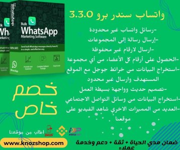 إذا كنت ترغب في إرسال آلاف رسائل الواتساب يوميًا لعملائك بشكل سريع وفعال، ودون التعرض لخطر الحظر، فهذا البرنامج هو الحل الأمثل لك! يوفر لك البرنامج القدرة على ترويج فيديوهاتك ومنتجاتك لملايين الأشخاص المهتمين يوميًا، وكل ذلك بدون أي رسوم إضافية.